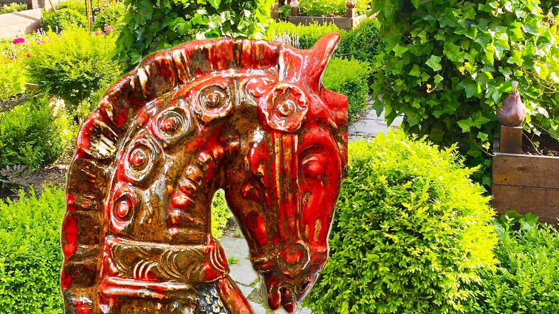 Trädgård med skulpturer