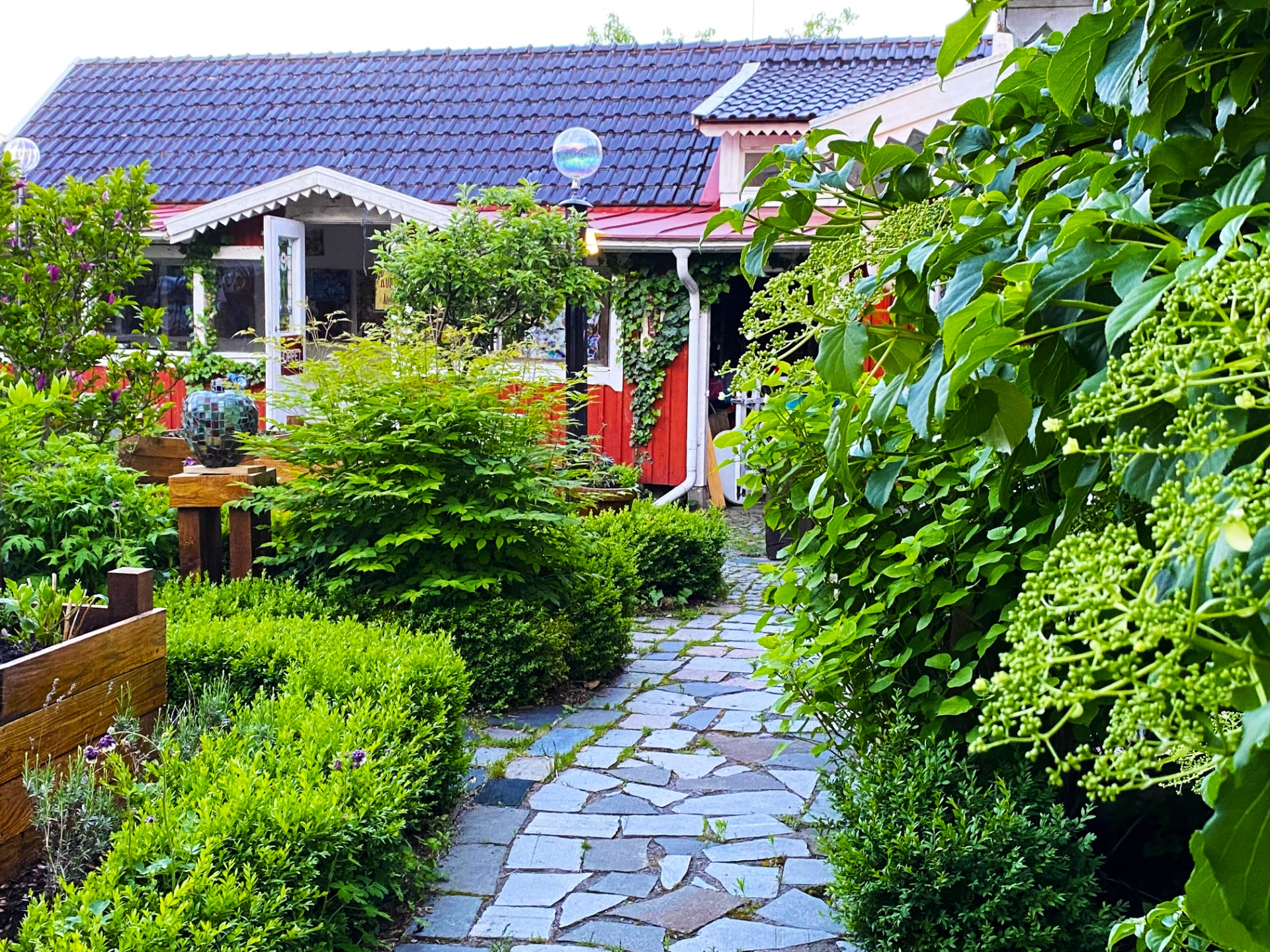 anslutning till boendet finns konstnären Mats Nyman, som visar sin konst i skulpturträdgården samt i öppen ateljé.